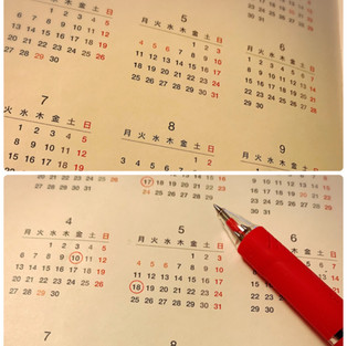 I use the red coloured pencil to shade the holidays for the monthly views and put red circles on the holidays on the year view.